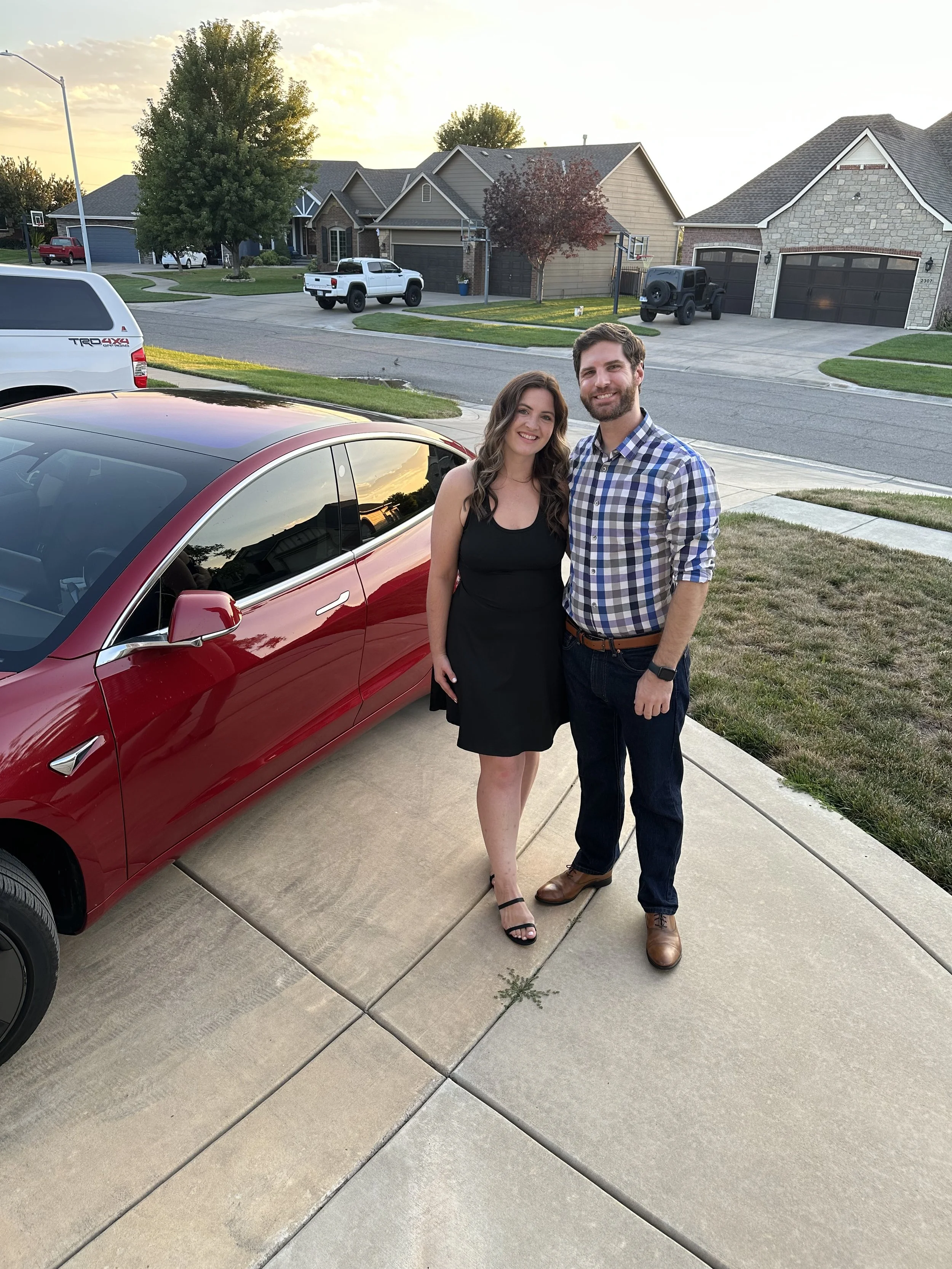 We met the modern way — swiping on dating apps. First on Hinge, where Patrick tried to win Shelby over by complimenting her dogs (rookie move), and later on Tinder right before Thanksgiving. Within hours of messaging, Shelby asked why Patrick hadn’t asked for her number yet — and by the end of the night, she asked why he hadn’t asked her out. Sushi was quickly on the calendar.